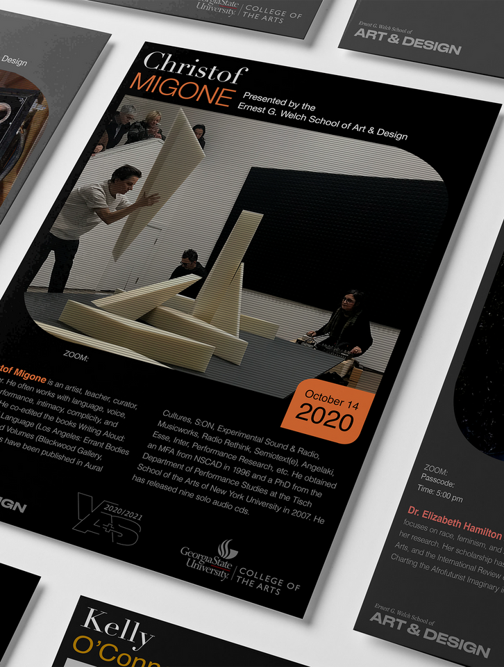 This digital portfolio showcases a catalogue designed for Georgia State University's Master of Fine Arts graduates of 2020. The catalogue highlights the diverse and innovative works of the graduates, demonstrating their proficiency in various art forms. The graphic design aims to complement the art pieces and narrate a visual story of the artists' journey.